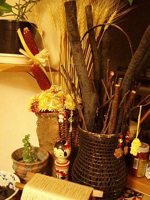 麦穂やトウモロコシなどドライフラワーを挿しました。