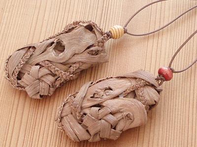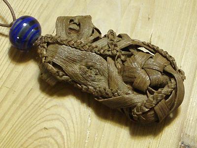 前に作った『山ぶどうのネックレス』に体験工房で作ったトンボ玉を
