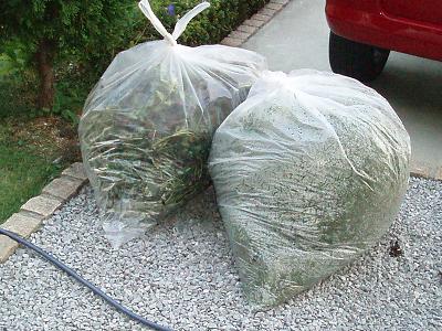 朝顔の蔓+芝+サツキで、ゴミたんまり!