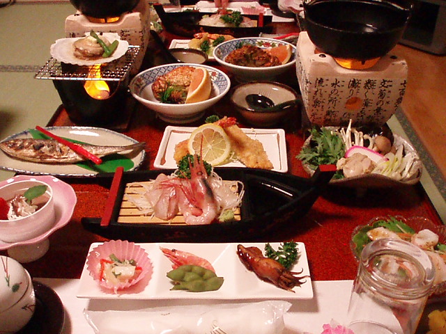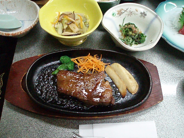 熊鍋・馬刺し・飯豊牛ステーキ。