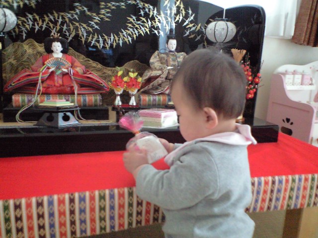 気に入ったようで、雛壇に行っては 振り回す始末…。