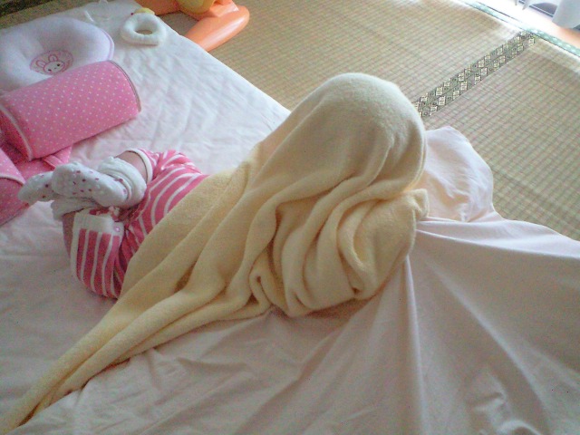 ちび子さん、蚊に刺されても 汗疹ができても、あまり痒がることがないし