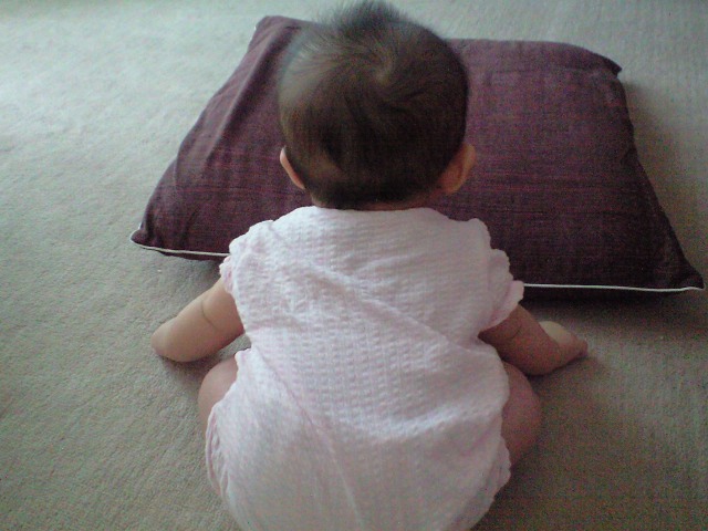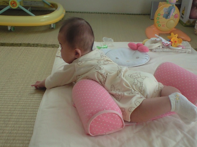 ちび子さんはと言うと、周りの赤ちゃんが気になったり、寝返りしようとしたり・・・。