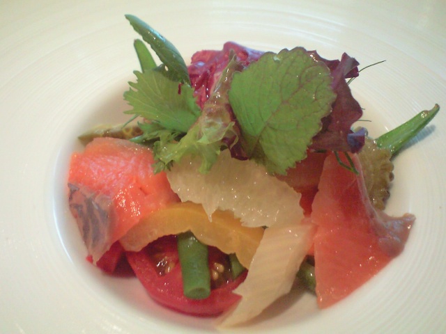 前菜のサーモンとグレープフルーツの