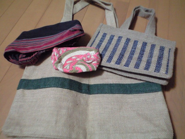 あとは、刺繍のポーチやジュートのミニバックなど。